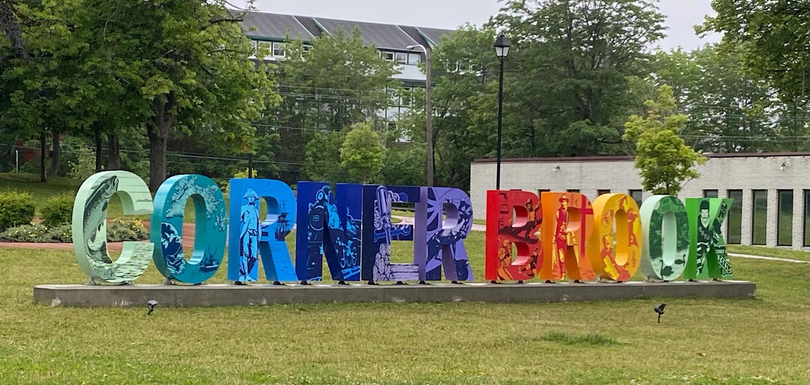 The Corner Brook Tourist Sign at Central and West Streets.