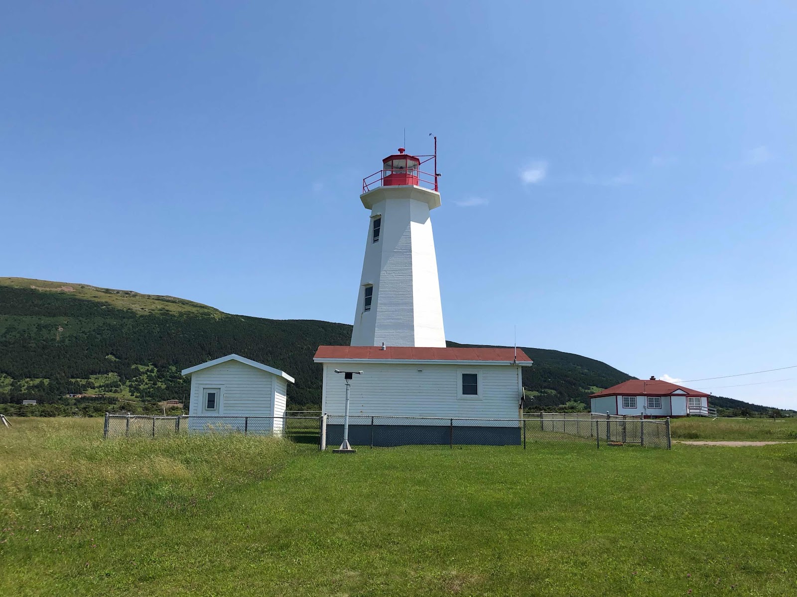 These mountains provide a backdrop to the lighthouse at Cape Anguille.